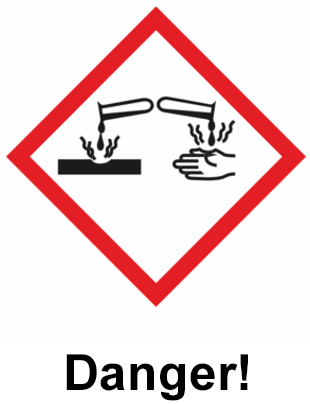 According the CLP-regulation we are obliged to indicate potential dangers at inappropriate use: Harmful if swallowed. If swallowed: Rinse mouth with plenty of water, if applicable get medical advice. Keep out of reach of children. May cause respiratory irritation. Causes cauterization at inappropriate use, if applicable get medical advice. At contact with eyes or skin: rinse out with plenty of water and if applicable get medical advice. At work, if applicable use gloves.